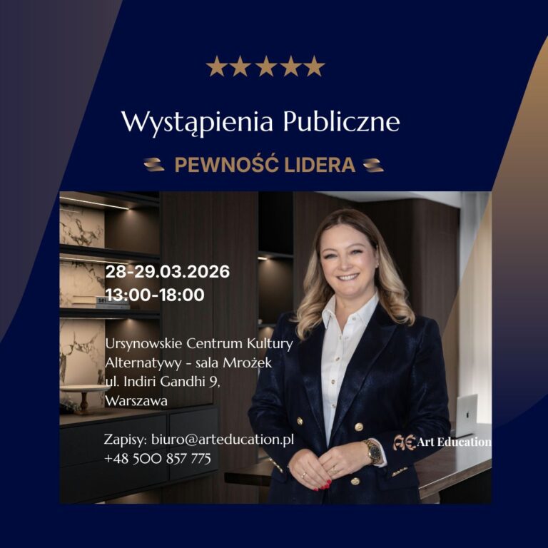 To intensywna, praktyczna praca nad obecnością lidera. Nie uczymy „ładnego mówienia”, lecz budowania realnego wpływu.
